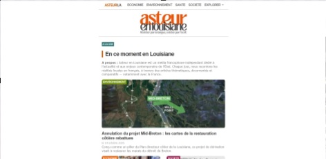 Asteur en Louisiane est un média francophone indépendant qui documente les réalités contemporaines de la Louisiane en français. Son site propose des articles sur l’environnement, l’économie, la santé et la société, avec une approche comparative et contextualisée. Il valorise une francophonie vivante, enracinée et ouverte sur le monde, loin des clichés folkloriques. Le site offre aussi un podcast court, un bulletin hebdomadaire imprimable, une sitothèque thématique et une sélection de livres