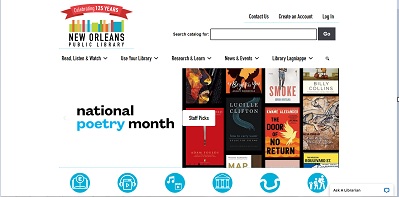 Gravement touchée par l'ouragan Katrina la NOPL compte une douzaine de succursales en plus d'une bibliothèque principale. Le site internet de la bibiliothèque municipale présente l'institution, son actualité, ses services et son catalogue. il donne acces aux archives municipales, aux collections numériques, à des ressources généalogiques et à une sitothèque.