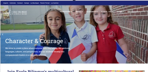 L’École Bilingue de la Nouvelle-Orléans est la seule école privée indépendante d’immersion française en Louisiane. Fondée en 1998, elle accueille les enfants de 18 mois à la 8e année. Son programme rigoureux bilingue franco-américain favorise la curiosité, la créativité et l’ouverture culturelle. Située à Uptown New Orleans, elle propose un environnement multiculturel enrichi par les arts, le sport et des activités extrascolaires variées, pour former des élèves confiants, engagés et globalement compétents.