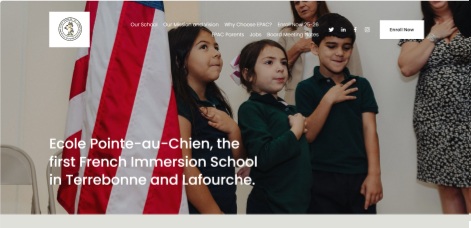 École Pointe-au-Chien est la première école publique d’immersion française dans les paroisses de Terrebonne et Lafourche. Fondée en 2023, elle accueille les enfants de la maternelle au CE2, avec une expansion prévue jusqu’au CM2. Son enseignement est enraciné dans les cultures autochtones et cadiennes des bayous. L’école offre une éducation bilingue de qualité, valorisant la langue française et les traditions locales. Un projet unique au cœur de la Louisiane francophone.
