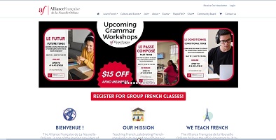 L'Alliance française est une organisation française dont l'objectif est de faire rayonner la langue française et la culture française à l'extérieur de la France. L'Alliance Française de La Nouvelle-Orléans est l'un des principaux fournisseurs d'enseignement de la langue et de la culture françaises dans la région de la Nouvelle-Orléans. Le site internet présente ses activités d'apprentissage du français mais aussi culturelles. (bibliothèque, club de lecture, cinéclub etc..).