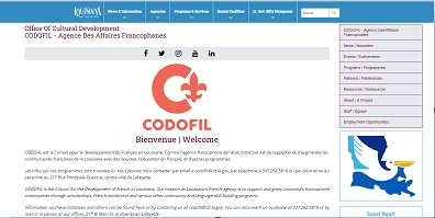 Le CODOFIL est le Conseil pour le développement du Français en Louisiane. L'agence des affaires francophones de l'état supporte et augmente les communautés francophones louisianaises avec des bourses, l'enseignement du français, et d'autres programmes. Le site internet présente l'agence et ses programmes, offre des informations et fournit des ressources.