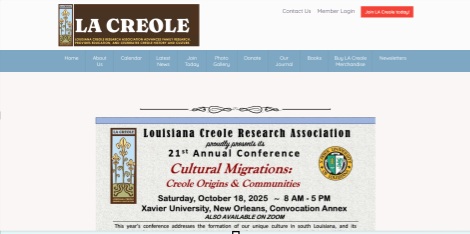 Le site de la Louisiana Creole Research Association valorise l’héritage créole de Louisiane à travers des recherches, publications et événements. Il propose des ressources historiques, des journaux, des livres, des conférences et une boutique en ligne. L’association agit comme un centre de mémoire et de transmission, avec un ancrage universitaire (Xavier University) et une mission éducative. Le site reflète un engagement communautaire fort et une volonté de préserver une culture riche et souvent méconnue.
