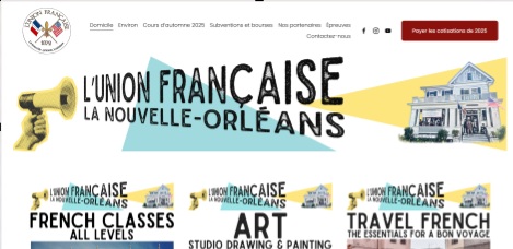 L’Union Française est une organisation à but non lucratif fondée en 1872 à La Nouvelle-Orléans. Son site présente des informations sur ses cours de français pour adultes, ses événements culturels, ses projections de films francophones, ainsi que ses programmes de bourses et prix pour promouvoir la langue française. Elle valorise l’héritage francophone en Louisiane et soutient les écoles primaires enseignant le français.